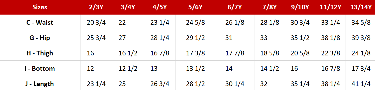 Available Sizes: 2-3Y to 13-14Y