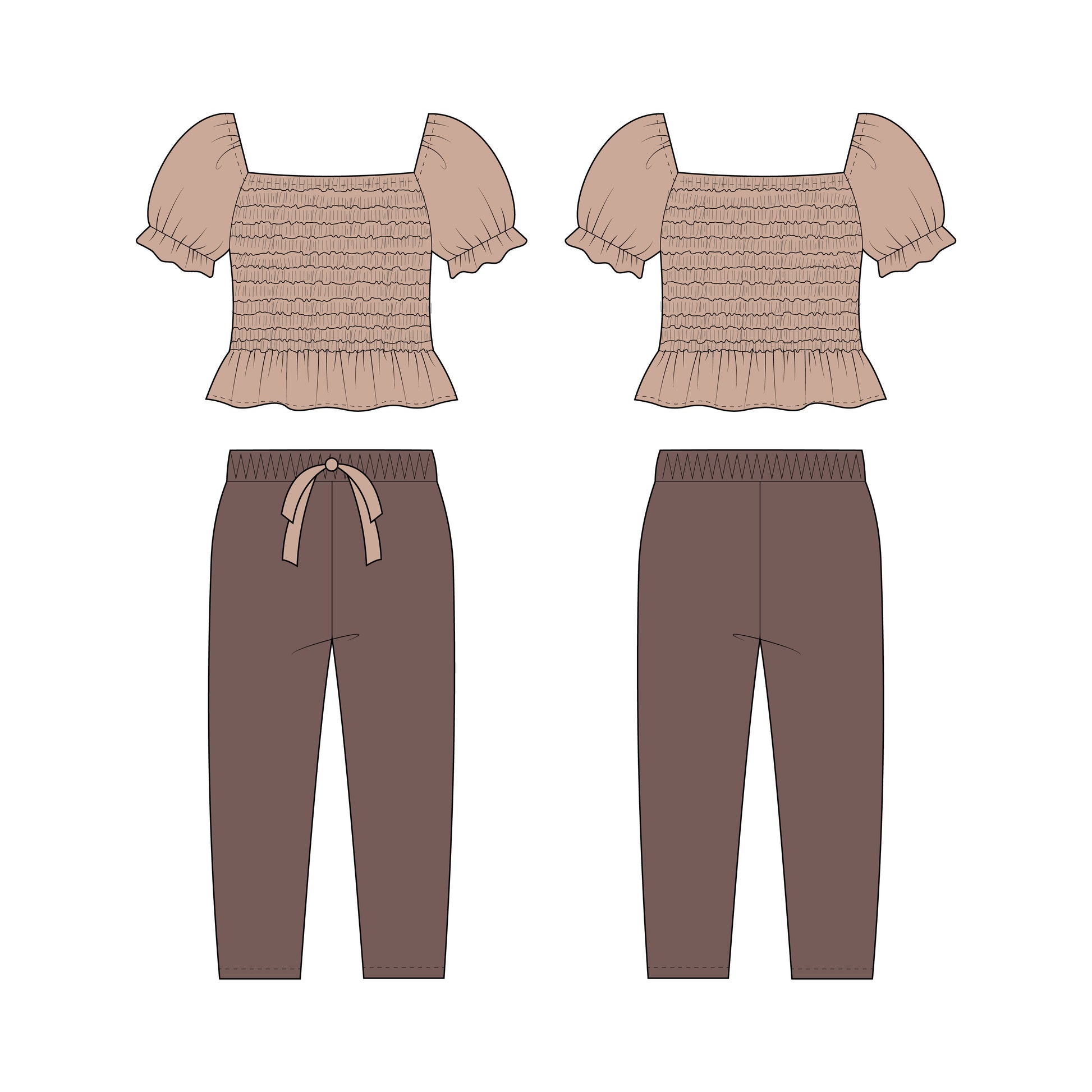 Kids - Girl's Top & Pant Co-ord Set Sewing Pattern - A0005-25-Y-8