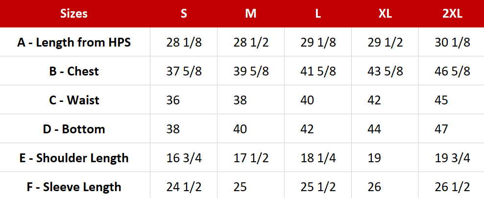 Available Sizes: S to XXL