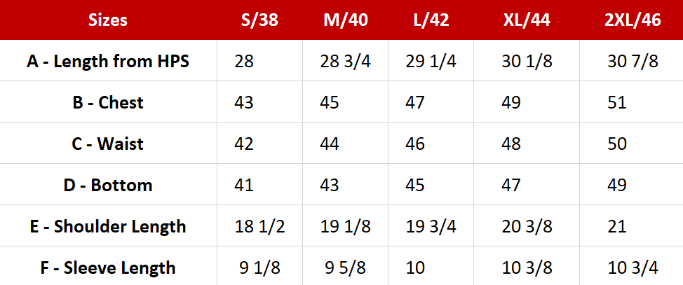 Available Sizes: S to XXL