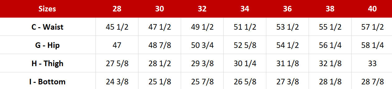 Available Sizes: 28 to 40