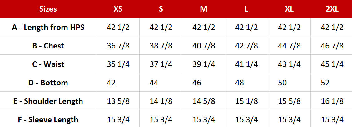 Available Sizes: XS to XXL