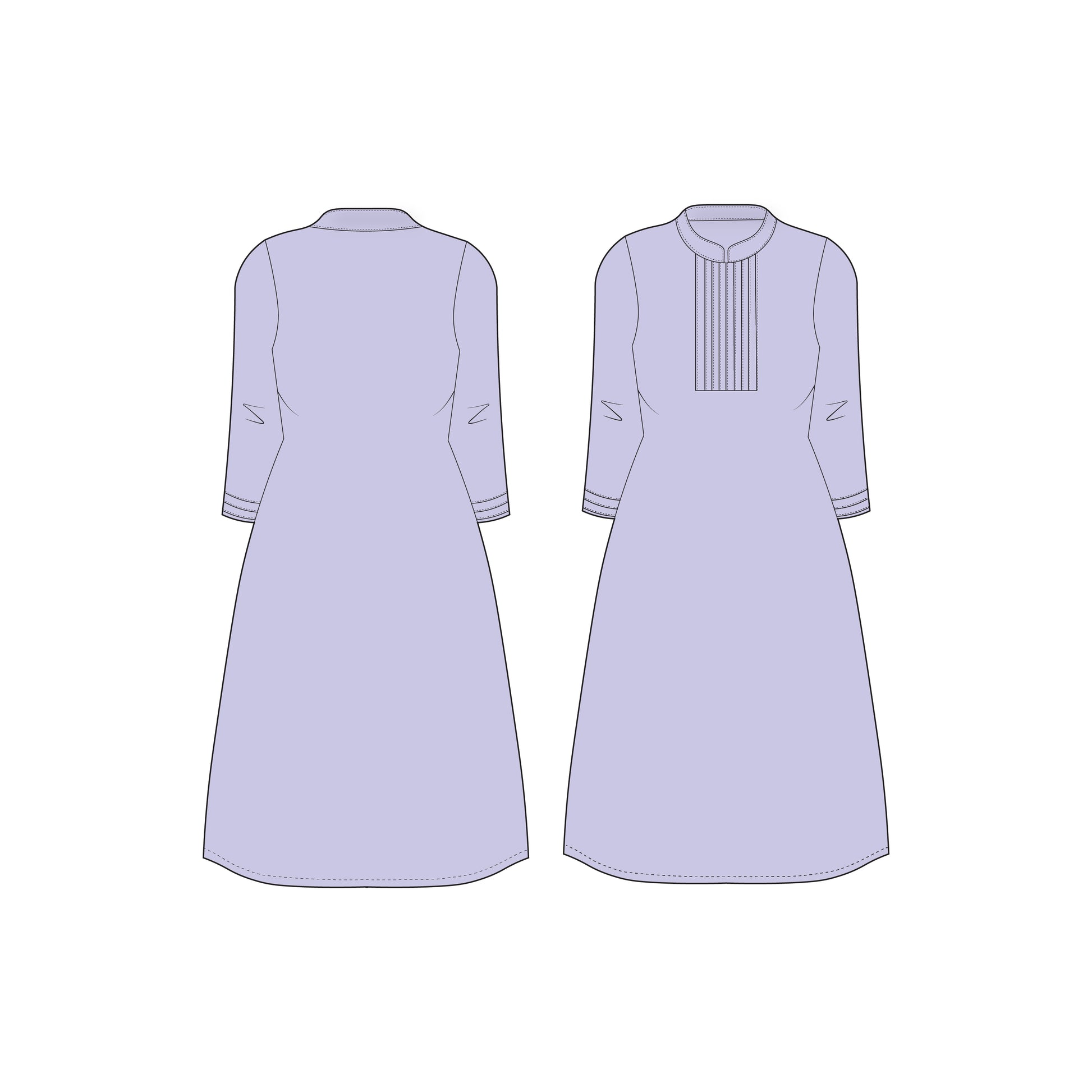 Women's Full Sleeves Chinese Collar Kurti Sewing Pattern - A0002-23-W-2