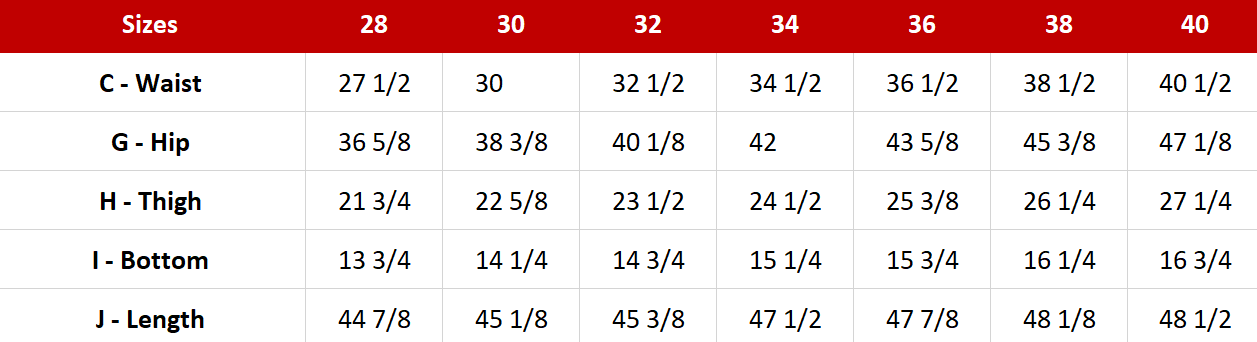 Available Sizes: 28 to 40